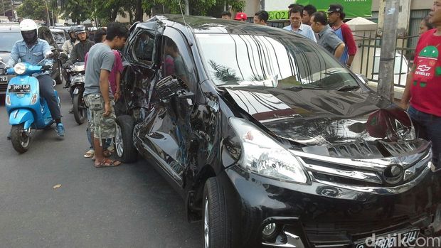 Jakarta - Kopaja 612 jadi bulan-bulanan massa. Kaca depan Kopaja dihancurkan warga. Kopaja itu ngebut di jalur TransJ di ruas Warung Buncit-Mampang, Jaksel. Di jalur menurun di depan Wisma Yakyf, di dekat putaran Kopaja menabrak Avanza dan pemotor yang juga sopir Go-Jek yang tengah membonceng istri dan anaknya.