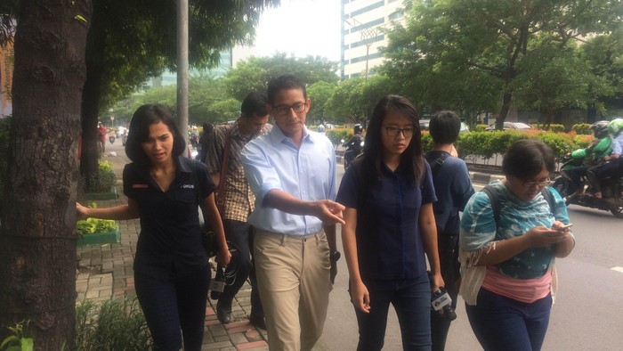 Kritik ini disampaikan Sandiaga saat berjalan kaki menuju kantornya di Menara Karya. Bakal cawagub yang diusung Gerindra dan PKS ini berjalan kaki setelah menerima penghargaan mewakili keluargannya di RS Jiwa Soeharto Heerdjan di Kemenkes, Jl HR Rasuna Said.