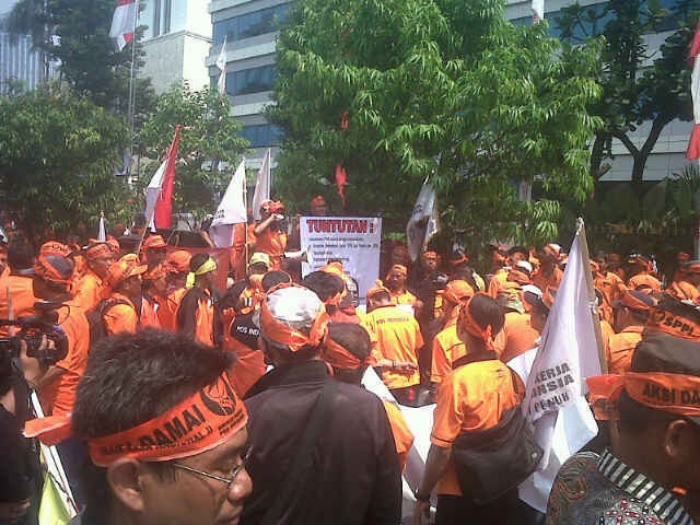 Pantauan detikcom, Kamis (28/6/2012), ada sekitar 800 orang yang berunjuk rasa di Kemenkominfo, Jl Medan Merdeka Barat. Seluruh demonstran terlihat kompak memakai seragam PT Pos berwarna oranye dan ikat kepala.