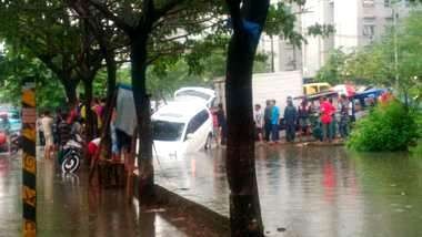 Seorang pembaca Nael Lim, melalui pasangmata.com, mengatakan mobil berwarna putih itu terperosok ke dalam kali sekitar pukul 18.00 WIB. Kondisi itu disebabkan jembatan yang tertutup air kali yang rata dengan jembatan.