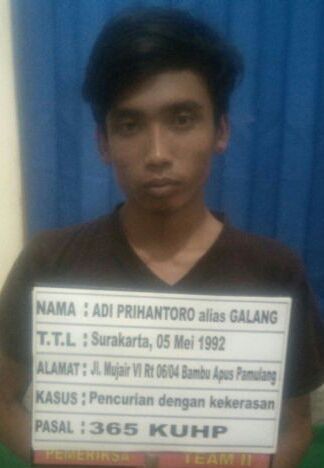 Akibat perbuatannya, Galang diancam dengan Pasal 365 KUHP dengan ancaman pidana paling lama sembilan tahun penjara, karena melakukan pencurian yang didahului dengan kekerasan.