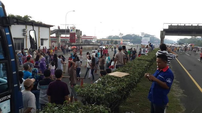 Sementara itu, para pengendara harus bersabar. Pasalnya dua ruas jalan tol tidak bisa dilintasi sehingga kemacetan total pun tak terhindarkan.