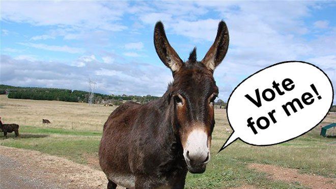 Tidak. Kalau orang Australia bicara tentang 'donkey vote', yang mereka maksudkan adalah sesuatu yang sama sekali berbeda. 'Donkey vote' adalah ketika anda asal-asalan saja memberi nomor urut dari atas ke bawah untuk seorang kandidat. Kelihatannya agak aneh, tapi itu tidak berarti tidak akan dihitung! 'Donkey vote' tetap suara yang sah. Memilih adalah wajib di Australia, jadi 'donkey vote' merupakan bentuk protes atau sikap apatis.
