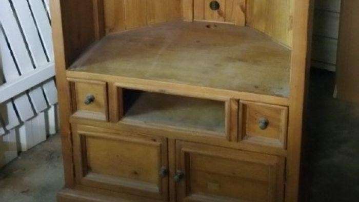 Polisi berharap seseorang mengenali lemari TV yang ditemukan di pasar loakHarveyBay ini. (Supplied:QueenslandPoliceService)