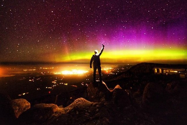 Carmel berada di ketinggian di puncak gunung Mt Wellington untuk melihatnya dan ia mengaku menjadi aurora yang terbaik dan paling kuat yang pernah dilihatnya selama beberapa tahun terakhir.