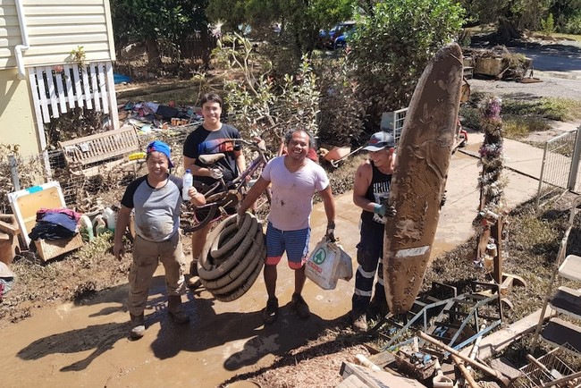Mahasiswa S3 University of Queensland yang tadinya mengungsi di penampungan tersebut namun harus membersihkan lumpur yang memenuhi rumahnya.
