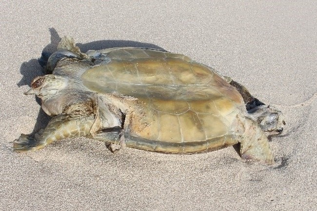 Dalam pernyataannya, departemen tersebut mengatakan rangka penyu yang ditinggal tersebut 'tampaknya disebabkan oleh ulah manusia yang membelah tubuh binatang tersebut untuk mengambil telurnya."