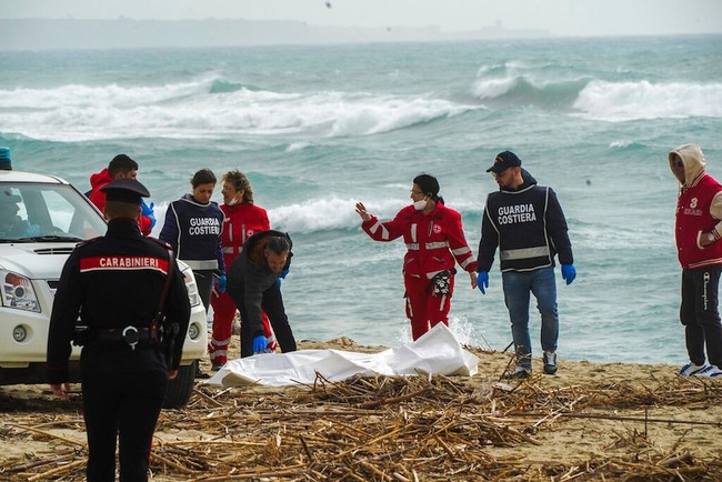 Pemandangan di pantai Steccati di kawasan Calabria terlihat sangat memilukan, dengan puluhan mayat terlihat hanyut ke pantai.