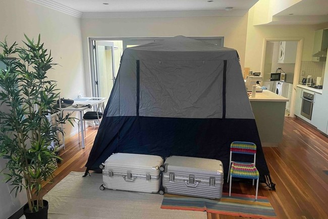 Karena Zoe tidak memiliki kamar sendiri, dia harus mendirikan tenda di ruang tamu di rumah yang disewanya, agar bisa memiliki privasi.