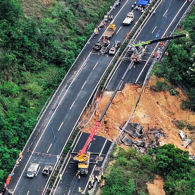 Stasiun penyiaran negara CCTV mengatakan bentangan jalan antara kota Meizhou dan kabupaten Dabu di provinsi Guangdong ambruk sekitar pukul 02.10 pada hari Selasa.
