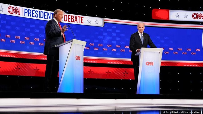 Jutaan mata menatap layar kaca ketika Presiden Joe Biden meladeni kandidat Partai Republik dan bekas Presiden Donald Trump dalam acara yang diselenggarakan oleh stasiun televisi CNN di Atlanta, Amerika Serikat, Kamis (27/6) malam.