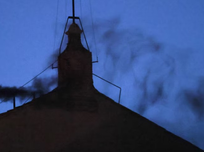 Konklaf sedang berlangsung di Vatikan dan asap hitam mengepul dari Kapel Sistina di hari pertama.