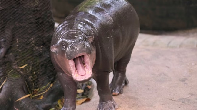 Kuda nil kerdil Thailand yang viral di internet, Moo Deng, merayakan ulang tahun pertamanya.