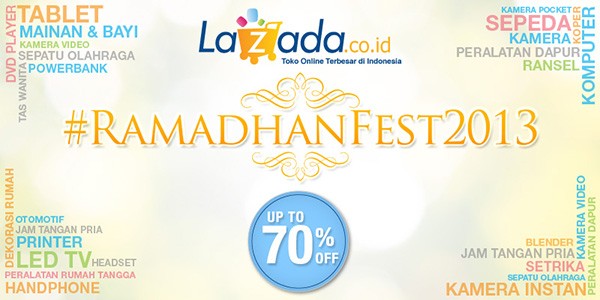 Ada promo khusus #RamadhanFest2013 mulai hari ini yang sayang kalau dilewatkan. Nikmati Ramadhan Sale up to 70% untuk ribuan produk pilihan, termasuk gadget terbaru seperti Samsung GALAXY S4 dan BlackBerry Q10. Ingin beli hadiah untuk kerabat atau keperluan rumah tangga jelang Lebaran? Cari saja di Lazada.co.id.