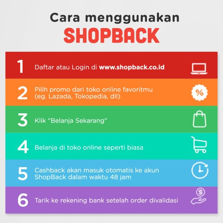 Lewat ShopBack, sekarang Anda bisa dapat cashback setiap beli apa saja, mulai dari pulsa, sembako, perlengkapan bayi dan ibu rumah tangga, tiket pesawat dan kereta, hotel, fashion, tiket nonton, voucher makan, pesan makanan, produk elektronik, smartphone, gadget, produk kecantikan, transportasi online, dan masih banyak lagi. Belanja apa saja Anda pasti mendapatkan cashback, selain cashback masih ada diskon, voucher, kode kupon, dan promo menarik setiap harinya yang bisa Anda dapatkan.