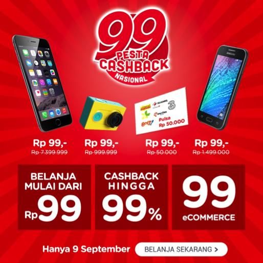 Menyambut pembukaan Pesta CashBack Nasional, khusus hari ini tanggal 9 September 2016, untuk Anda yang belum pernah menggunakan ShopBack dan ingin mengikuti promo Pesta CashBack Nasional, Anda berkesempatan untuk mendapatkan barang-barang kebutuhan dengan harga Rp 99, Rp 9.900, Rp 99.000, dan promo cashback hingga 99%.