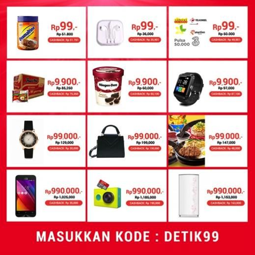 Mau tahu barang apa saja yang bisa dibeli dengan harga mulai dari Rp 99,-? Berikut ini daftarnya: