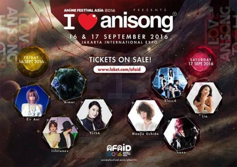 Selain menikmati pameran utama, salah satu yang dinantikan di AFAID adalah Konser Anisong. Nah, buat yang belum tahu, ini dia line up untuk artis-artisnya.