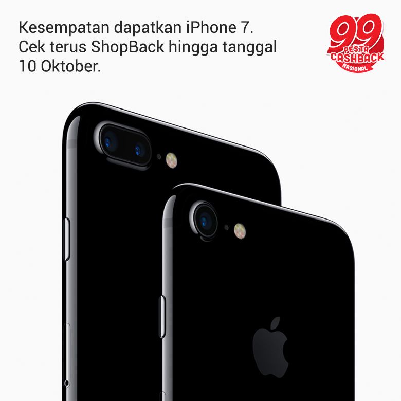 Selain mendapatkan promo diskon dan cashback hingga 50%, Anda juga berkesempatan untuk mendapatkan iPhone 7 dari ShopBack. Caranya mudah, cukup cek situs ShopBack setiap harinya selama Pesta Cashback Nasional berlangsung mulai hari ini sampai tanggal 10 Oktober 2016.