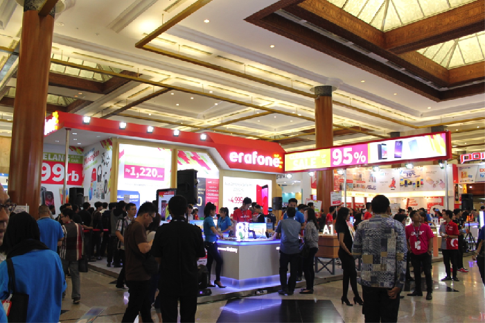 Di booth Erafone berbagai merek ternama dijual dengan harga kompetitif, seperti Samsung, LG, Lenovo, Motorola, Apple, Nokia, Blackberry, Polytron, Oppo, ASUS, Xiaomi, Smartfren, Vivo, Luna, Coolpad, Alcatel, dan Huawei.