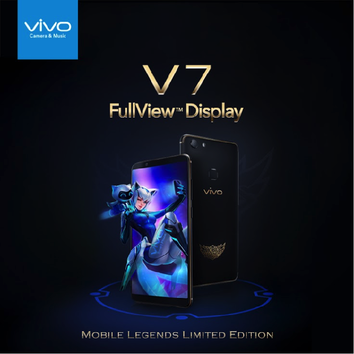 Desain Vivo baru ini pun makin keren dengan logo Mobile Legends pada bagian belakang smartphone. Aksen warna emas pada tombol sisi smartphone, bezel, maupun logo Mobile Legends: Bang Bang juga menambah keunikan desain smartphone yang telah tampil compact dengan layar penuh FullViewTM Display khas V7 Series.