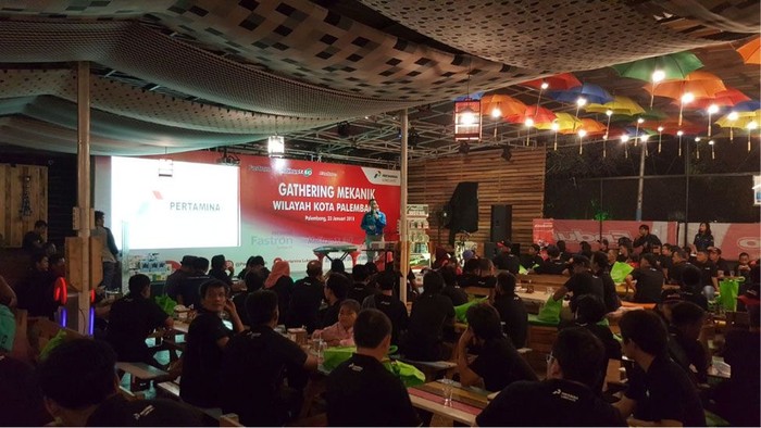 Para mekanik antusias mengikuti acara Gathering Mekanik Outlet pada Selasa (23/1/2018) di Gunz Cafe, Palembang / Foto: Pertamina Lubricants |