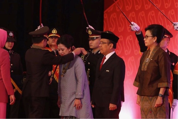 Selain Menko PMK, Tanda Kehormatan Bintang Bhayangkara Utama juga diberikan kepada Mensesneg Pratikno, Menkeu Sri Mulyani Indrawati, MenPUPR Basuki Hadimoeljono, Kepala BIN Budi Gunawan, KASAU Yuyu Sutisna, dan KASAL Siwi Sukma Adji.