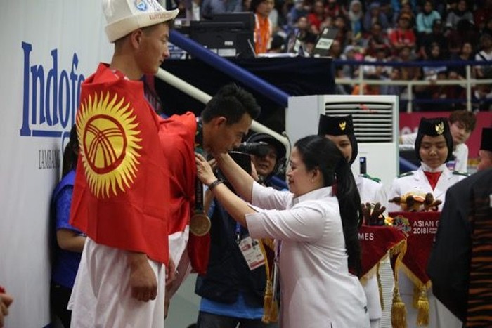 Pada kesempatan yang sama, Puan juga langsung didaulat untuk menyerahkan medali perunggu kepada pesilat Indonesia Rusdana Amri yang bertanding di kelas 70-75 kg Putra pada laga sebelumnya.