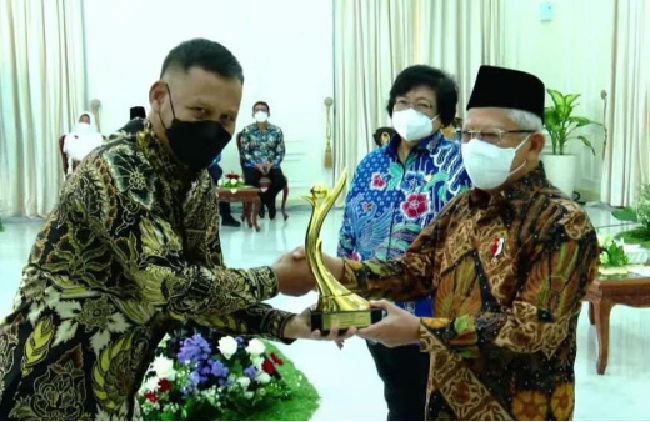 Penghargaan PROPER emas tahun 2022 diberikan oleh Wakil Presiden Republik Indonesia KH Ma'ruf Amin kepada Presiden Direktur PT Adaro Indonesia Priyadi di Istana Wakil Presiden pada Kamis (29/12/2022). Penghargaan ini turut disaksikan oleh Menteri Lingkungan Hidup dan Kehutanan Siti Nurbaya Bakar.
