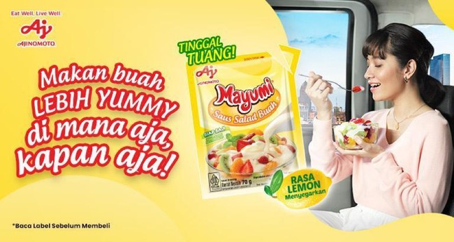 Ia melanjutkan agar membuat salad buah menjadi lebih praktis, maka masyarakat bisa menggunakan produk terbaru dari Ajinomoto, yaitu Mayumi® Saus Salad Buah. Dengan Mayumi® Saus Salad Buah, salad buah bukan hanya bernutrisi tetapi juga menjadi tambah lezat dan nikmat saat disantap.