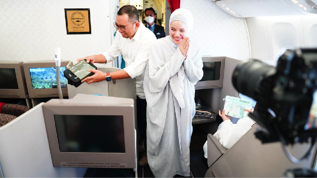 Diketahui, sebanyak 400 calon jemaah diterbangkan dari Jakarta menuju Jeddah pada 17 April 2023 dengan Boeing 777 nomor GA 980. Selama di pesawat, calon jemaah wanita mendapat produk kolaborasi eksklusif 'Journey of Soul' dari Wardah, sedangkan calon jemaah pria menerima produk Kahf 'Towards New Beginning' yang hadir dalam pouch atau tas serut kecil yang praktis.