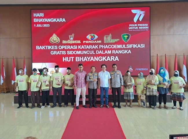 PT Industri Jamu Dan Farmasi Sido Muncul TBK bekerja sama dengan Perhimpunan Dokter Spesialis Mata Indonesia (Perdami) DKI Jakarta dan Yayasan Masjid Raya Kebayoran Residence (MRKR) memberikan operasi katarak gratis kepada 200 pasien di RS Polri Kramat Jati.