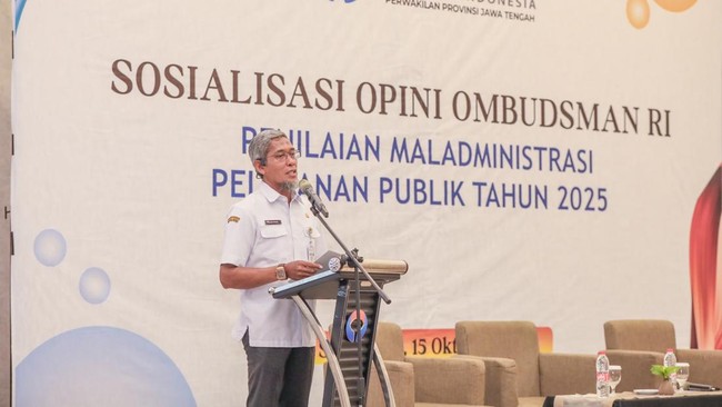 Hal tersebut disampaikan saat Sosialisasi Opini Ombudsman RI Penilaian Maladministrasi Pelayanan Publik Tahun 2025 di Hotel Oak Tree Semarang, Rabu (15/10). Ia mengatakan pada tahun ini Ombudsman RI menerapkan sistem penilaian maladministrasi penyelenggaraan pelayanan publik.