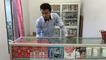 Abu Ahmad membantu merapikan toko obat di klinik istrinya di Medan.