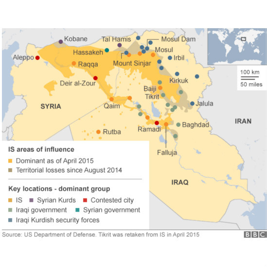 Setahun setelah deklarasi pembentukan kekhalifahan ISIS oleh Abu Bakr al-Baghdadi, kelompok tersebut masih kuat, walaupun sudah diserang berulang kali oleh Amerika Serikat dan sekutu-sekutunya.