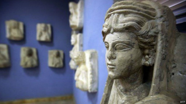 Kaum militan ISIS dituding menjuali artefak-artefak budaya Suriah untuk mengumpulkan dana, mengakibatkan PBB menerbitkan larangan perdagangan benda budaya dari negeri itu.