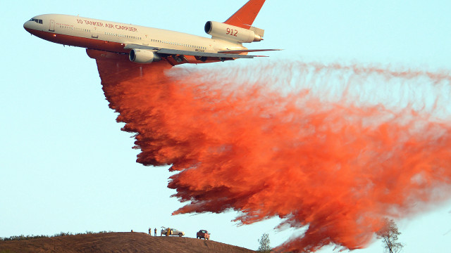 Selain petugas pemadam kebakaran, pesawat pemadam juga turut dikerahkan.