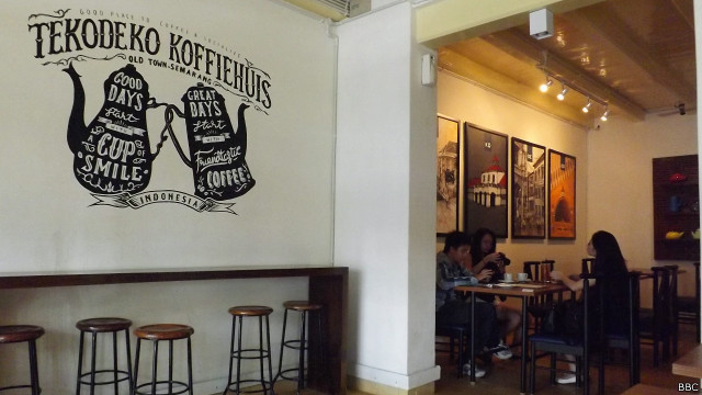 Disulap menjadi sebuah kafe, inilah wujud bagian dalam dari gedung kuno peninggalan akhir abad ke-18. Para pemerhati bangunan cagar budaya mengatakan, upaya konservasi gedung kuno harus berkompromi dengan tuntutan zaman, termasuk mempertimbangkan aspek ekonomi agar bangunan itu bisa didayagunakan.