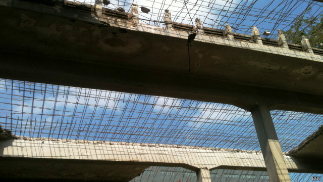 Tidak jauh dari situ berdiri sebuah gedung tua dengan kondisi merana dan bahkan nyaris hancur.