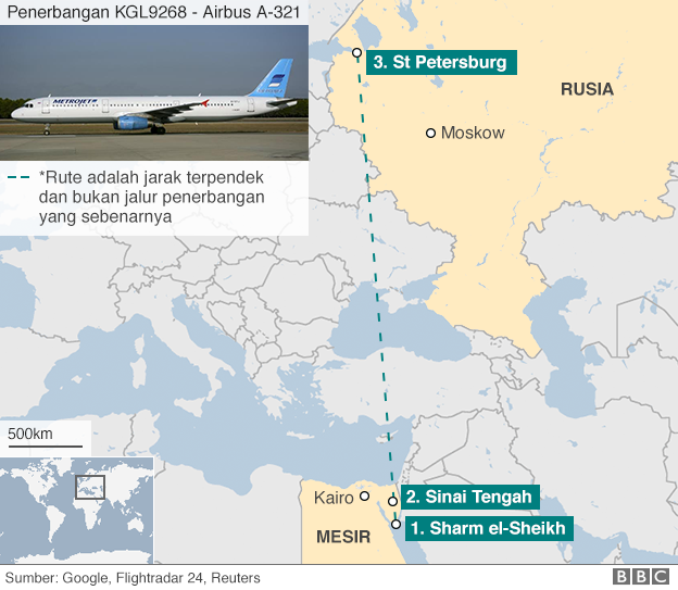 Pemerintah Rusia mengatakan hampir 80.000 warganya kini berada di Mesir dan sebagian di antara mereka tengah berlibur di Sharm el-Sheikh. Sedangkan sekitar 20.000 warga Inggris diperkirakan belum bisa bertolak dari kota di tepian Laut Merah tersebut.