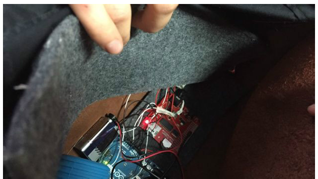 Di dalam tas tersebut, dipasang seperangkat alat elektronik, dan sebuah celah untuk menaruh kartu kredit.