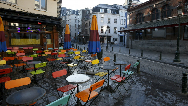 Bar dan restoran yang tutup di tengah kota Brussels.