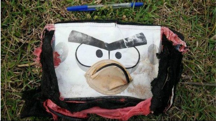 Sebanyak 20 barang ditemukan, termasuk dompet "Angry Bird" bewarna putih, hitam dan merah, tas punggung dan sarung laptop bertuliskan "MENSA".