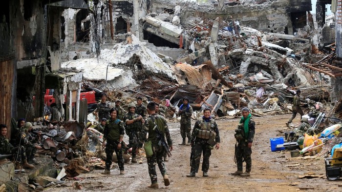 Militer Filipina memerlukan waktu sekitar lima bulan untuk menguasai kembali Marawi sepenuhnya dari militan Islam. (Reuters)
