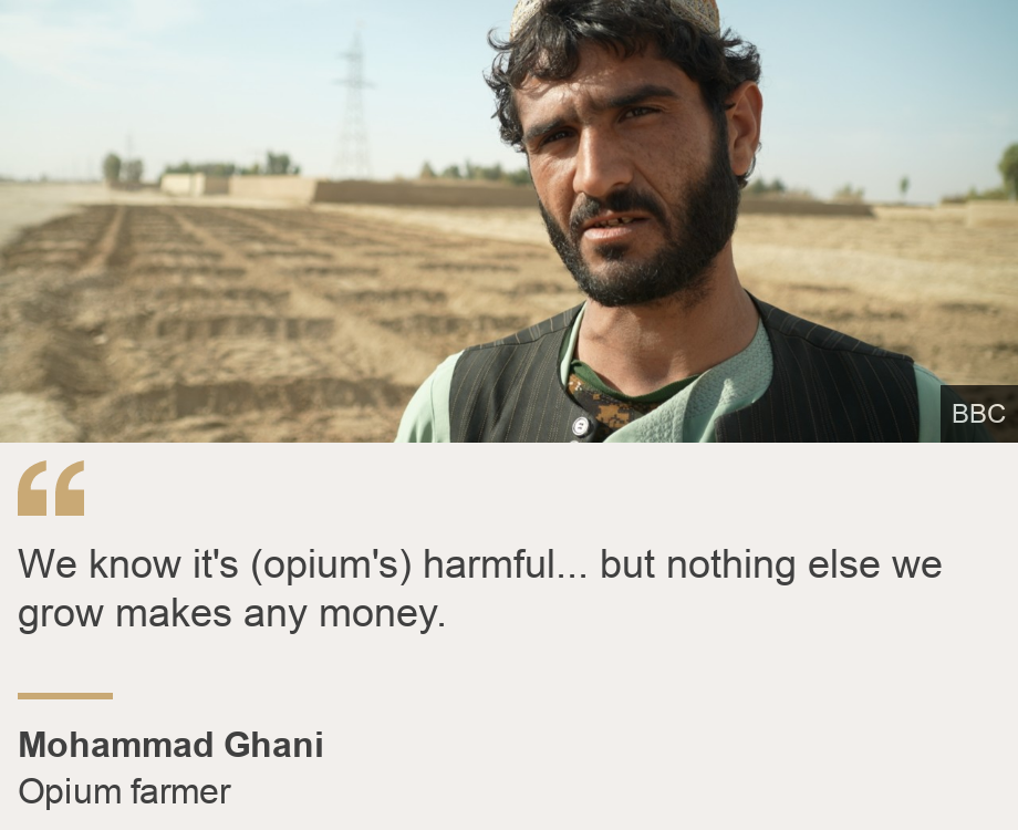 "Taliban telah mencapai apa yang mereka miliki berkat opium," kata seorang petani dengan nada marah.