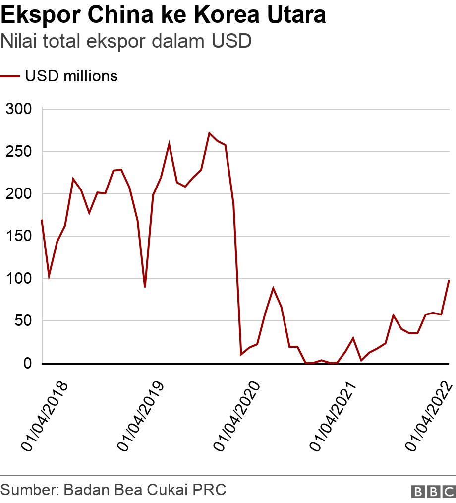 Data bea cukai China menunjukkan jumlah impor Korea Utara dari China berlipat ganda sejak Maret hingga April.
