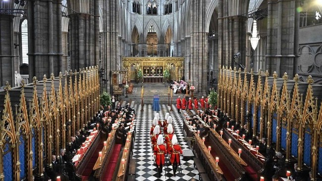 Pemakaman Ratu Elizabeth II telah dimulai di Westminster Abbey, London. Sekitar 2.000 tamu menghadiri upcara pemakaman pada Senin (19/09).