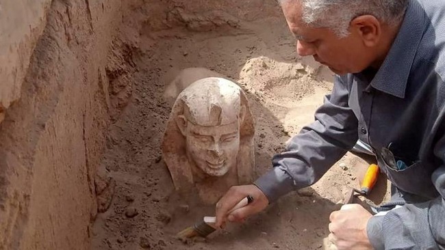 Selain sphinx yang "diukir dengan indah dan akurat", para arkeolog juga menemukan lempengan batu era Romawi dengan prasasti demotik dan hieroglif.