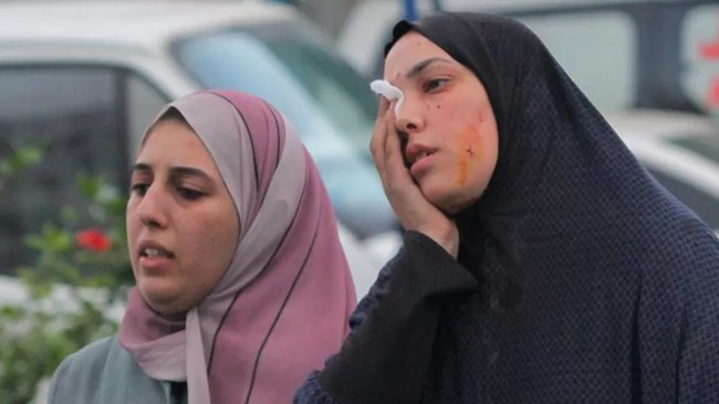 Bulan Sabit Merah Palestina mengatakan pada Sabtu (11/11) bahwa timnya terjebak di dalam dengan 500 pasien dan sekitar 14.000 orang terlantar, kebanyakan adalah perempuan dan anak-anak.