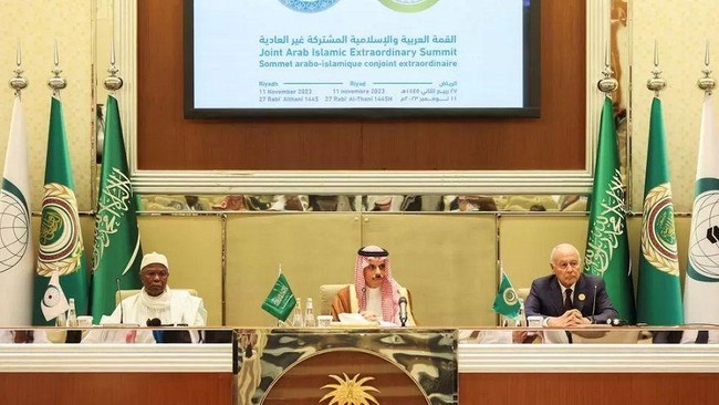 Di kawasan mewah di sekitar Hotel Ritz-Carlton di Riyadh, di tengah buket bunga raksasa dan lampu gantung yang berkilauan, lokasi yang jauh dari Gaza yang hancur, para pangeran, presiden, dan perdana menteri bertemu dalam KTT Gabungan Luar Biasa Negara Islam dan Arab.
